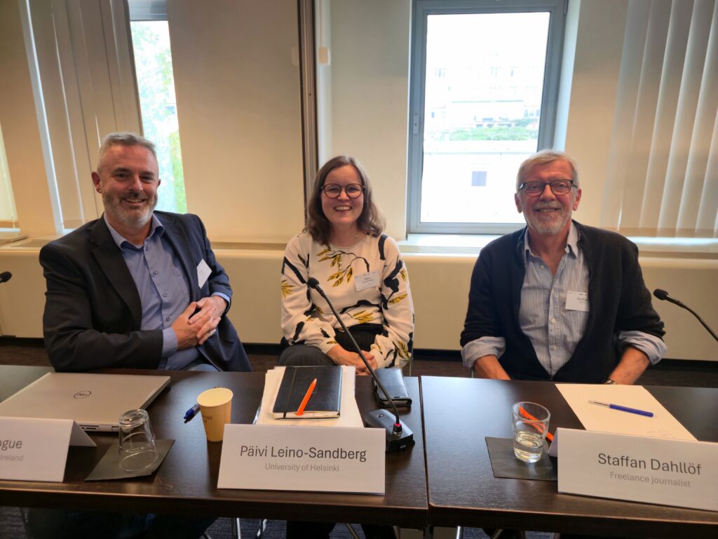 The panel was chaired by Onno Brouwer (Partner, Freshfields) and included Fred Logue (FP Logue LLP, Ireland), Staffan Dahllöf (Freelance Journalist, Denmark) and Professor Päivi Leino-Sandberg (University of Helsinki) as panelists. The panelists discussed how the Aarhus Convention and EU rules on access to environmental information deliver and fail to deliver.